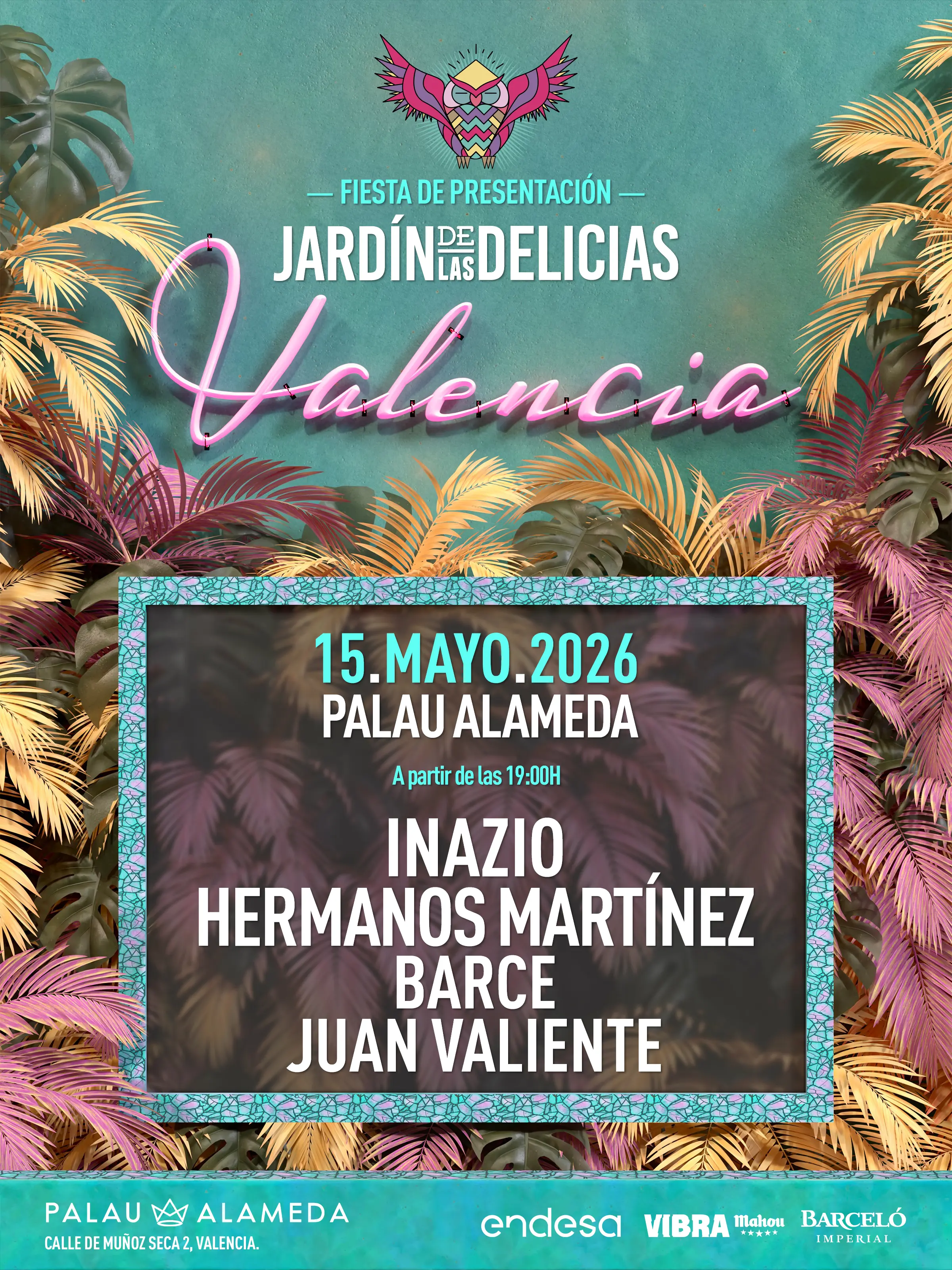 REGISTRO PREVENTA SEVILLANo existe mejor comienzo. El Jardín de las Delicias 2026 arranca el 15 de mayo en Valencia con su fiesta presentación oficial: Inazio y Hermanos Martínez en directo, junto a los DJs Barce y Juan Valiente.